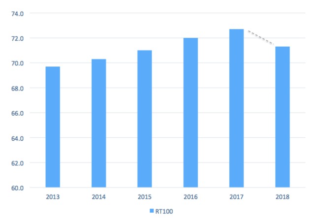 Para determinar la lista RT100 de empresas con mejor reputación del mundo, RI encuestó a más de 230,000 personas en 15 países de enero a febrero de 2018. Las empresas consideradas generalmente tienen ingresos superiores a 50 mil millones de dólares, presencia en todos los países encuestados y familiaridad de marca con al menos 40% de la población general.
