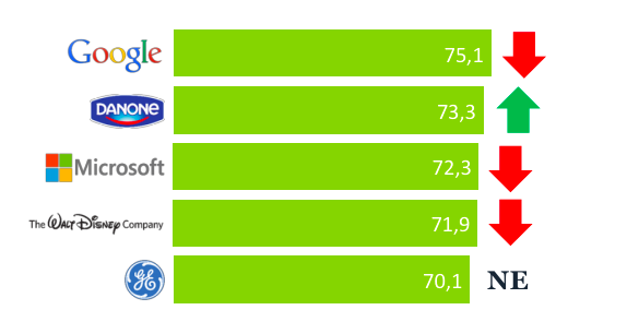 Solo 21 de las 50 compañías que conforman el listado cuentan con el mencionado distintivo. Aunque esto no significa que el resto no sean responsables. En realidad, Google, Danone, Microsoft, Disney y General Electric conforman el top cinco de las empresas mejor evaluadas en la dimensión de ciudadanía corporativa.