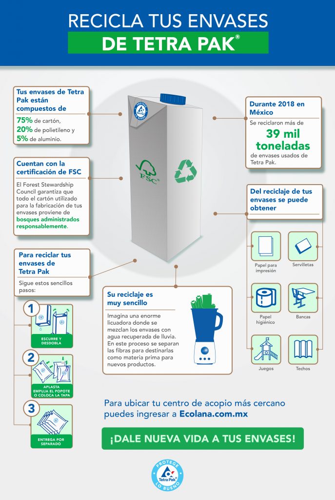 Recientemente, para apoyar la captación de envases usados, Tetra Pak trabaja con Ecolana, una startup compuesta por una plataforma digital que ayuda y orienta a las personas a encontrar el centro de acopio más cercano a su domicilio para llevar sus envases y que posteriormente sean reciclados.