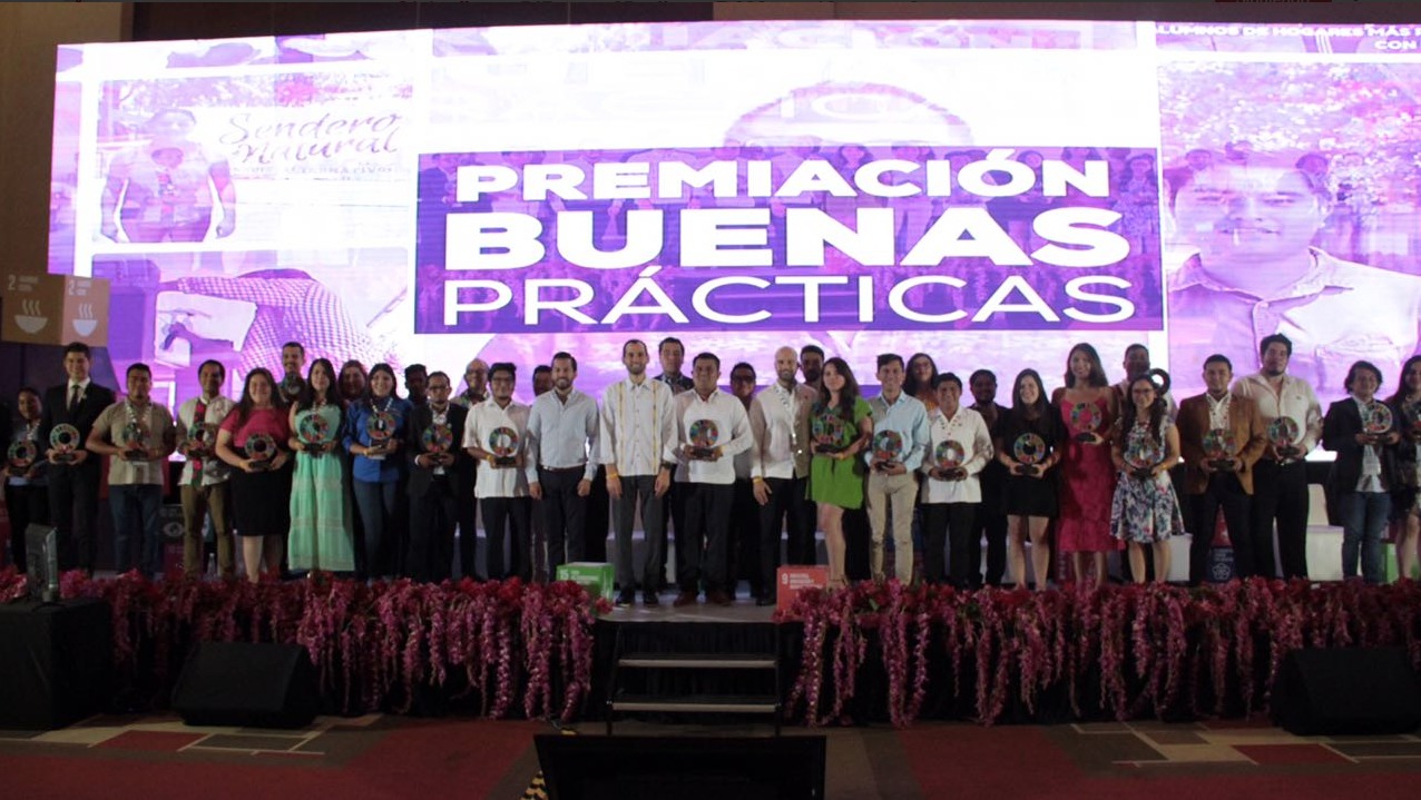 El coordinador del programa de voluntariado de la Universidad Autónoma de Yucatán (UADY), el QFB Javier Antonio Cen Puerto, recibió un reconocimiento por el trabajo realizado para institucionalizar el programa de voluntariado de esa casa de estudios. El reconocimiento en buenas prácticas que favorecen al cumplimento de los ODS, consiste en una bella escultura que contiene el círculo de los ODS, fue entregado a Javier durante la reunión internacional de Jóvenes 2030 celebrado en Acapulco.