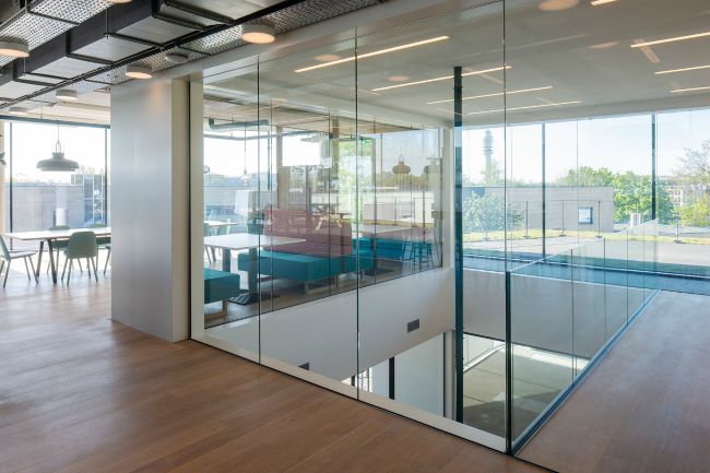 Podemos decir que la eficiencia energética es la principal característica de estas oficinas. El rasgo más atractivo es que tiene energía 100% generada con paneles solares colocados en el roof garden.