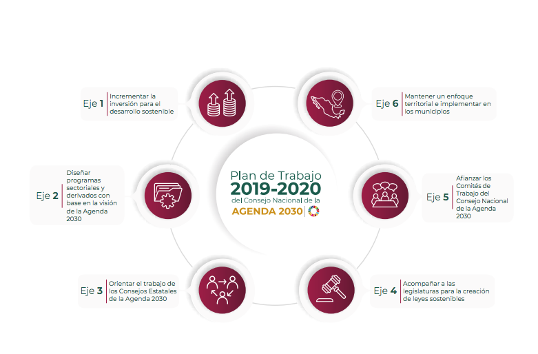 Los ejes del plan de trabajo 2019-2020 del Consejo Nacional de la Agenda 2030 son los siguientes: