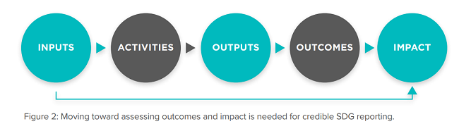 Si una empresa solo mide e informa las aportaciones, el avance de la actividad y los resultados (por ejemplo, árboles plantados, pozos excavados, lámparas solares distribuidas), se está perdiendo el impacto final de estos esfuerzos.