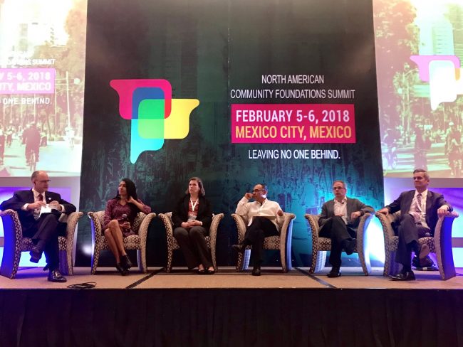 Hace unos días se llevó a cabo en la ciudad de México la Cumbre de Fundaciones Comunitarias de Norteamérica, el evento fue organizado con gran éxito por Comunalia (red mexicana de fundaciones comunitarias), Community Foundation of Canada y el Council on Foundations de EEUU. Sus respectivos representantes: Juan Esteban Gutiérrez Manzano, Andrew Chunilall y Vikki Spruill, respectivamente dieron la bienvenida a los participantes, al tiempo que reconocieron la labor realizada por David Pérez Rulfo de Corporativa de Fundaciones,