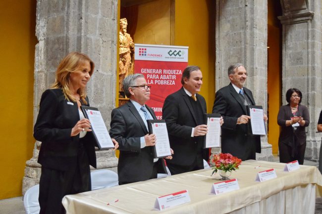 Hacia la tarde, después de la comida, el Consejo Coordinador Empresarial, la Universidad Iberoamericana y Fundemex firmaron un convenio de colaboración cuyo objetivo es fortalecer a las empresas sociales en México.