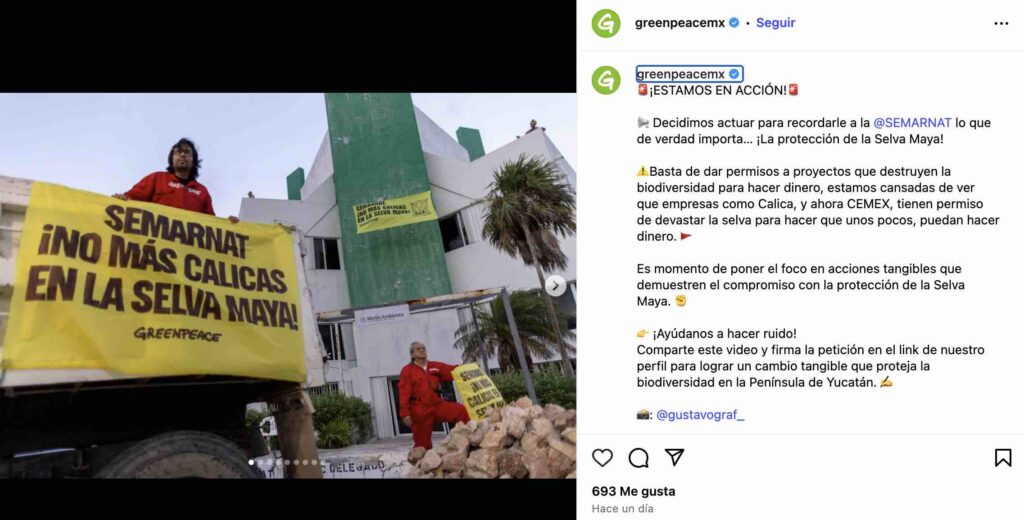 La protesta frente a SEMARNAT no fue un acto aislado, sino una advertencia: la Selva Maya está al límite. Greenpeace señala a CEMEX como un actor que, en lugar de liderar un cambio hacia un modelo regenerativo, estaría optando por repetir prácticas ya condenadas por su impacto ambiental y social.