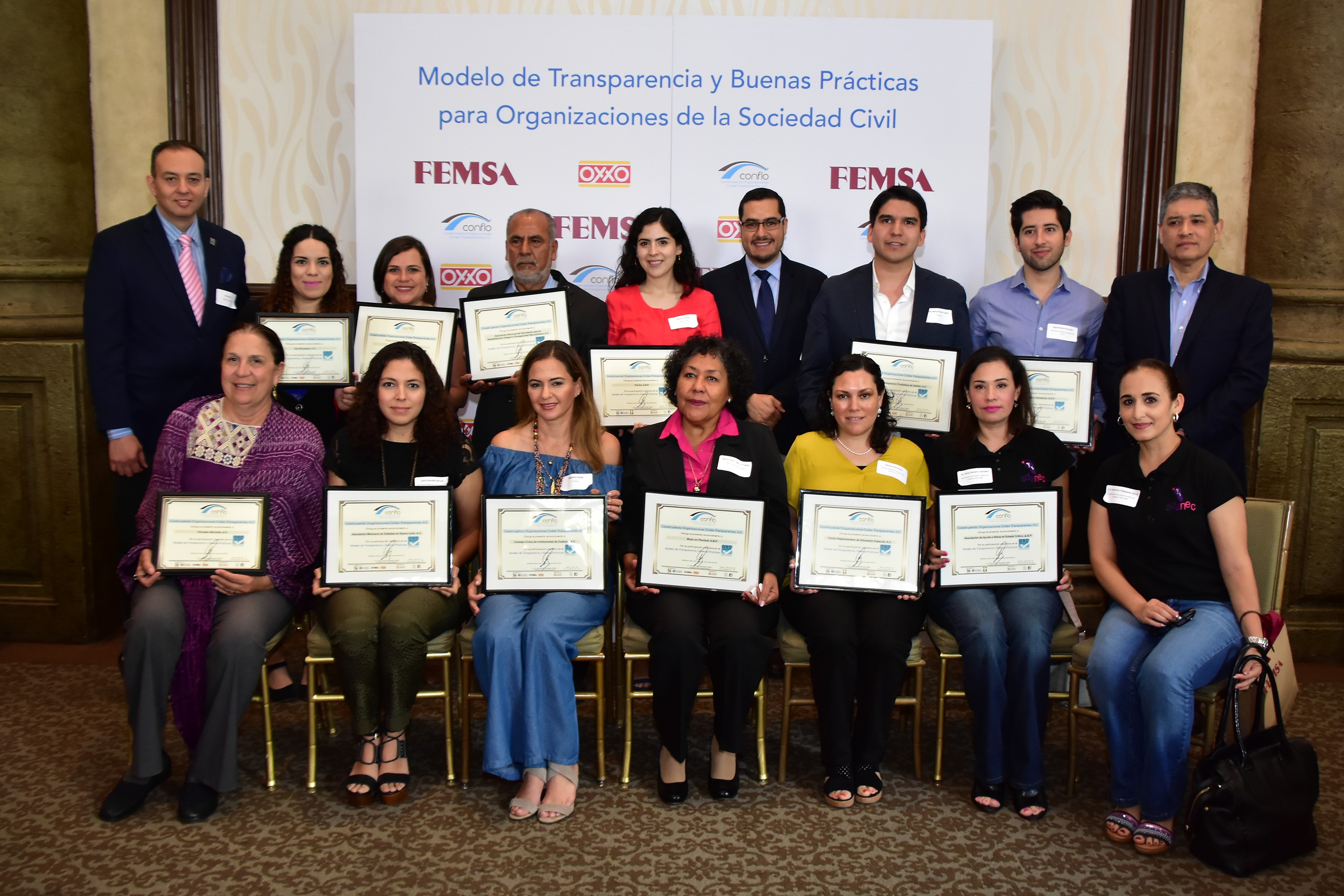 En el transcurso de una semana, Confío, Construyendo Organizaciones Civiles Transparentes, A. C. en alianza con Femsa y Oxxo, entregó en la capital del país como en Monterrey, reconocimientos a organizaciones de la sociedad civil por fortalecer su institucionalidad y transparencia.