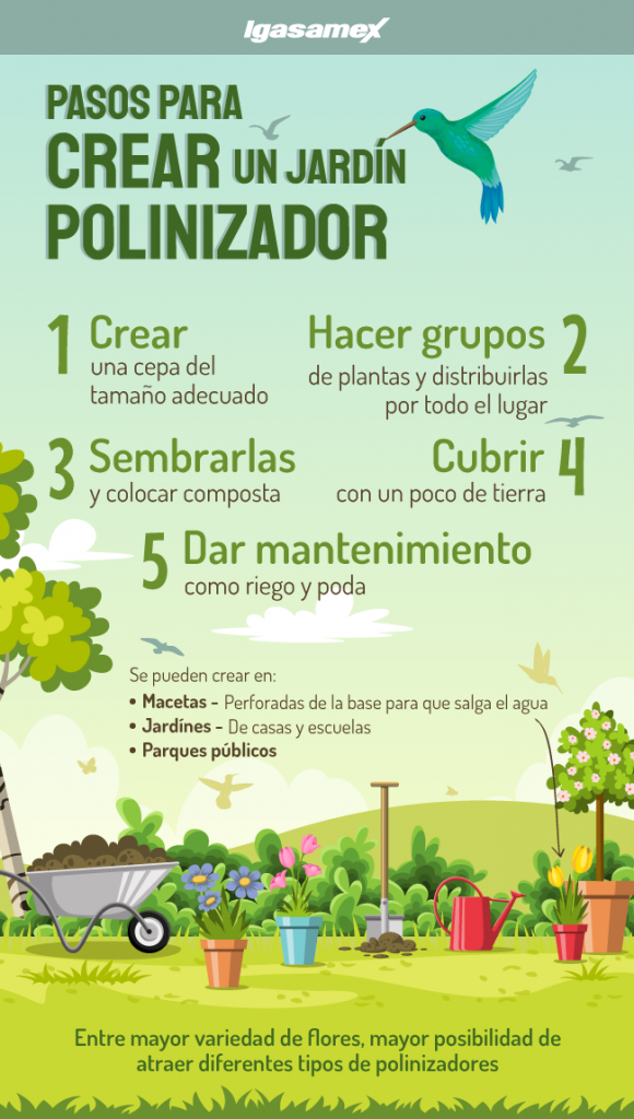 La creación de jardines polinizadores tiene como propósito tener más polinizadores visitantes, por medio de la plantación de diversas especies florales.