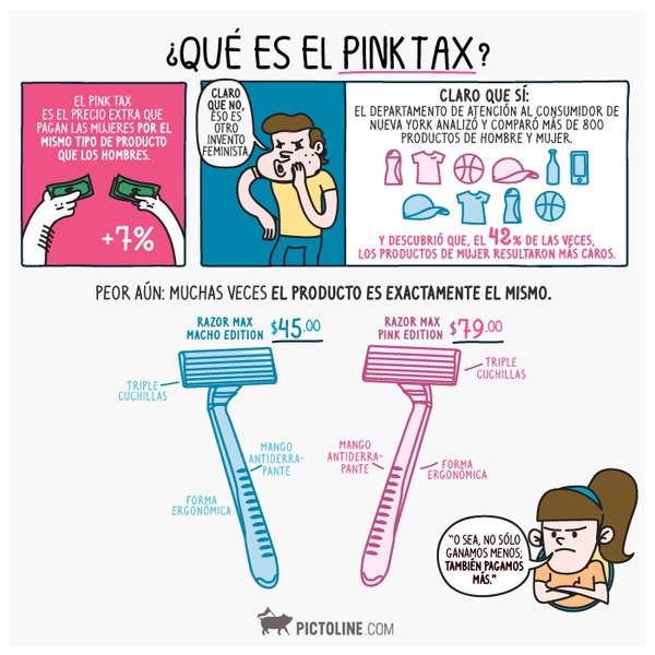El título de un informe del Observatorio de Coyuntura Económica y Políticas Públicas (OCEPP) de Argentina describe en diez palabras la situación: PINK TAX: El impuesto que las mujeres pagan solo por ser mujeres.