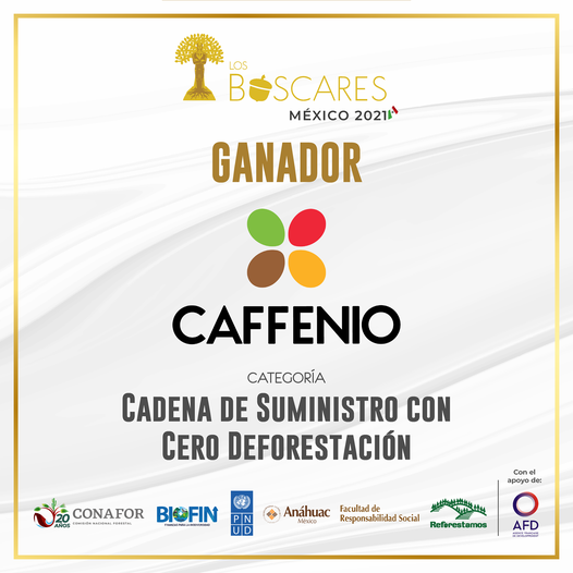Por estos esfuerzos, el pasado 14 de octubre la empresa mexicana CAFFENIO recibió el IV “Premio Los Bóscares” en la categoría Cadena de Suministro con Cero Deforestación con el proyecto “Protección de la biodiversidad en la zona cafetalera de las Altas Montañas, Veracruz”.