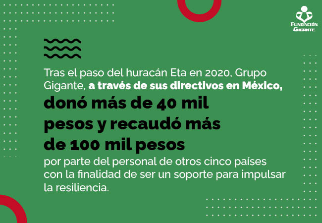 Con el mismo sentido de compromiso y solidaridad, Fundación Gigante colaboró en la resiliencia tras desastres naturales a través de beneficiar a 26,975 personas con una inversión de casi 25 millones de pesos, entre los que se contempló la inversión realizada como respuesta a la pandemia de COVID-19.
