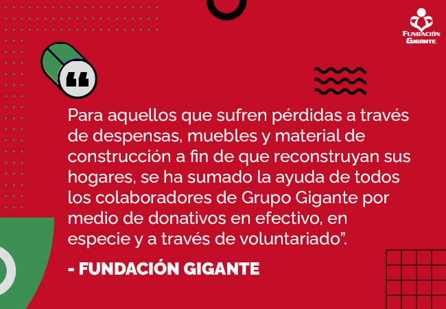De esta forma, cuando todo parece perdido, instituciones y empresas como Grupo Gigante y su fundación, dan esperanza a quienes se ven afectados por los desastres naturales sin importar las fronteras. Tan solo en 2019 beneficiaron a 814 personas a través de una inversión de más de 700 mil pesos.