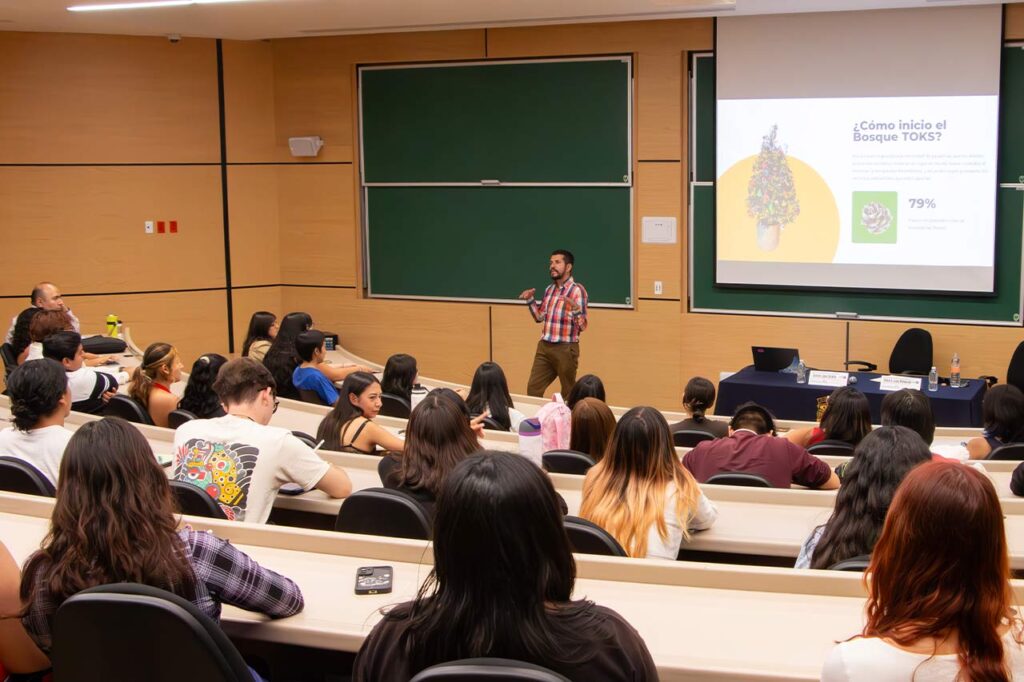 Posteriormente, Germán López Sarabia, representante de Reforestalia, compartió el tema “Emprendedores Ambientales”, una plática que inspiró a los jóvenes a ver el emprendimiento como una herramienta para resolver problemáticas ecológicas, demostrando que es posible generar valor económico, mientras se protege la naturaleza.