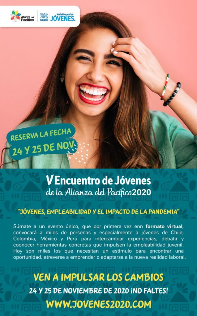 El encuentro de este 2020 llevó el nombre de “Jóvenes, empleabilidad y el impacto de la pandemia”, y se dieron cita empresarios, emprendedores y jóvenes de los países miembros de la Alianza del Pacífico, con el objetivo de proveer a los jóvenes herramientas que les ayuden a enfrentar la nueva realidad laboral.