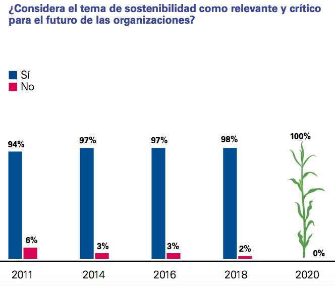 Hasta ahora, el mayor reto para las organizaciones se presenta en la generación de acciones específicas para la gestión de la sostenibilidad desde niveles estratégicos, a pesar de que existe un gran entendimiento y aceptación de estos temas como críticos.