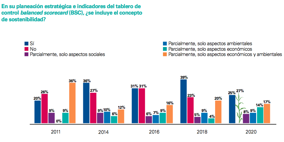 Lo anterior puede ser resultado de dos grandes factores: por un lado, la situación económica del país ha llevado a muchas empresas a tomar precauciones financieras en las que se prioriza la operación y no la estrategia, y, por otro, muchas compañías, principalmente las pymes, aún lo perciben como un costo más que como una inversión, o no se sienten con las capacidades necesarias para implementar la sostenibilidad en su operación.