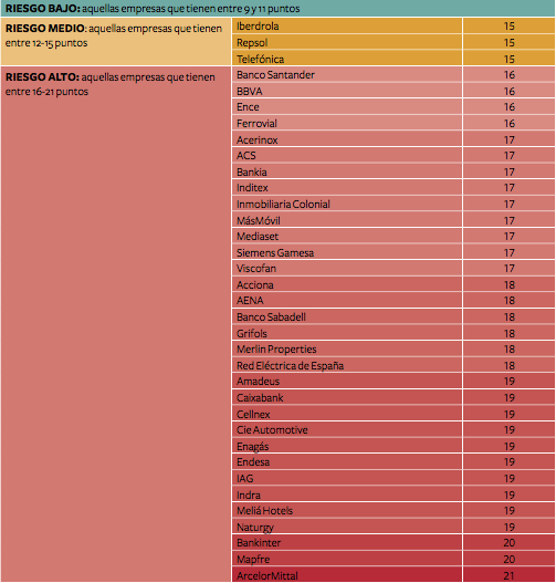 - Riesgo bajo (transparentes): Aquellas empresas que tienen entre 0-3 puntos.