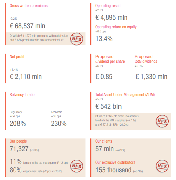 En su Informe anual integrado y estados financieros consolidados de 2017, Generali también reportó cierta información no financiera identificada a través de un proceso de materialidad específico. Este es un informe con referencia a GRI, ya que se centra en el “núcleo” de los informes de sustentabilidad. Para proporcionar a todos los interesados una visión completa de los compromisos, acciones y desempeño, se publicó información adicional sobre sustentabilidad en varias secciones del sitio web del Grupo. La información publicada en el Informe Integrado Anual y en el sitio web brinda una imagen completa de los informes de sustentabilidad, que forman la base de Índice de contenido GRI.