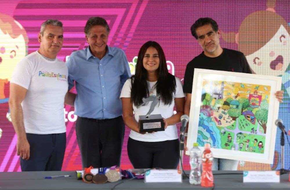 En el marco de la reactivación de su fundación, Paola Espinosa, destacada deportista y considerada una de las personas más influyentes en nuestro país, recibió un homenaje de manos del presidente del municipio Juan José Frangie Sade.
