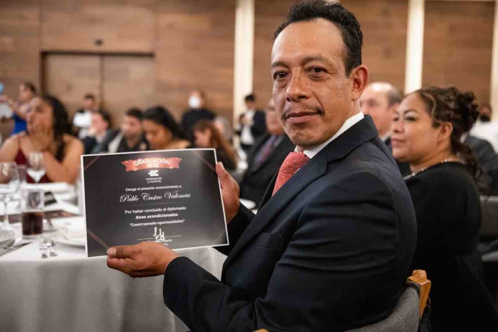 Para lograrlo, llevan aulas de estudio a las obras en las que trabajan, a sus comunidades rurales o, incluso, de manera virtual, a sus hogares, con el fin de que, bajo la guía de asesores, concluyan sus estudios, adquieran habilidades para el desarrollo humano y conocimientos que los apoyen en su vida personal y profesional.