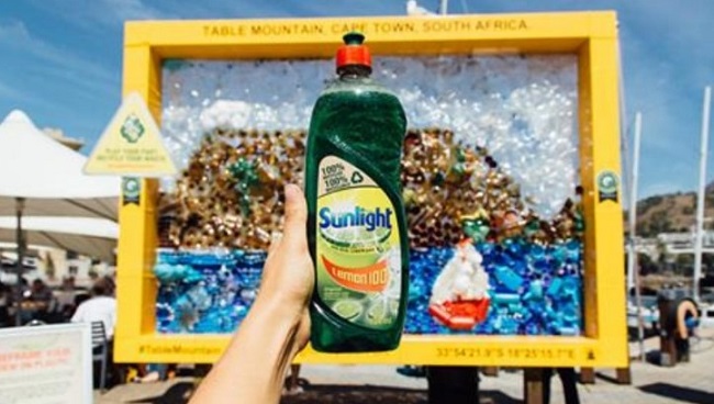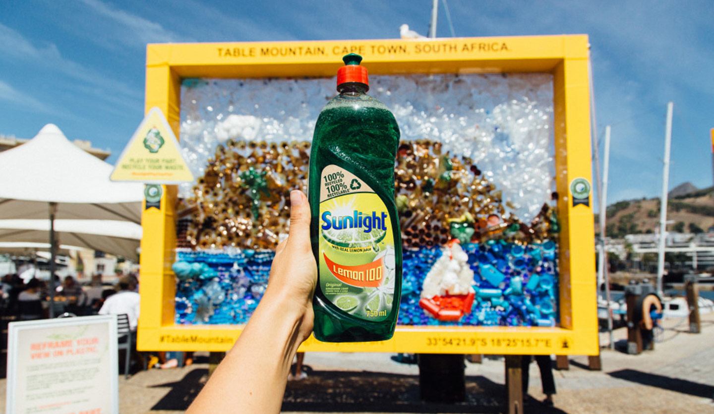 Unilever ha incorporado PET reciclado en las botellas Sunlight desde 2013, cuando su relación de contenido reciclado era del 25%. Esto se incrementó al 50% en 2015 y al 100% para un ciclo de prueba de botellas en 2018.