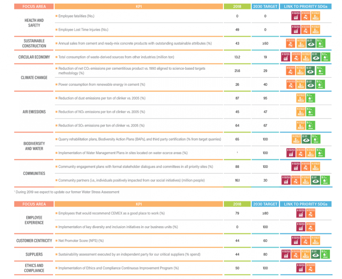 Y en la siguiente tabla podrás observar el avance de CEMEX en el cumplimiento de los Objetivos de Desarrollo Sostenible: