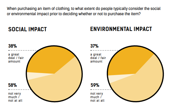 La reciente encuesta de Fashion Revolution de 5,000 consumidores descubrió que el 88% de los encuestados preferiría comprarle a una compañía que se dedica a la protección del medio ambiente que a una que no lo hace.