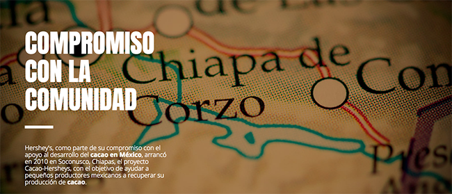 Para responder a esta interrogante visitamos la página web dedicada a Hacer el bien sabe bien. Ahí descubrimos Proyecto Chiapas. Referido en el comunicado como Proyecto Cacao México y más adelante en su página como proyecto Cacao-Hershey’s. ¿Quién los entiende?