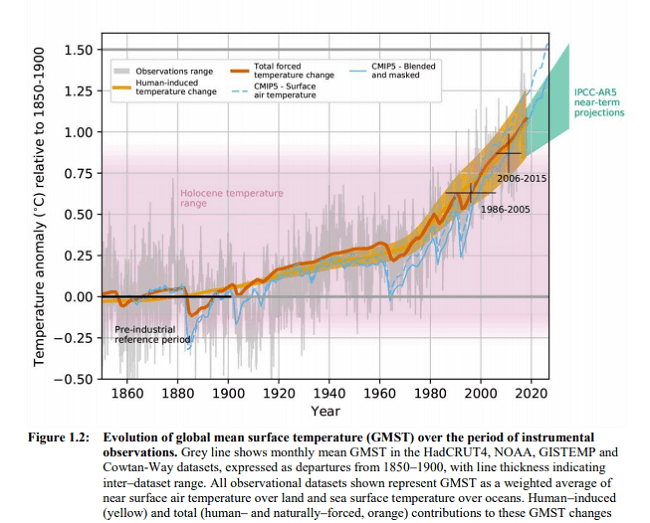 El calentamiento global se define en este informe como un aumento en las temperaturas combinadas de la superficie del aire y el mar en la superficie promediadas en todo el mundo y en un período de 30 años. A menos que se especifique lo contrario, el calentamiento se expresa en relación con el período 1850-1900, utilizado como una aproximación de las temperaturas preindustriales. Para periodos menores a 30 años, el calentamiento se refiere a la temperatura promedio estimada centrada en ese periodo más corto, lo que explica el impacto de cualquier fluctuación o tendencia de la temperatura dentro de esas tres décadas.