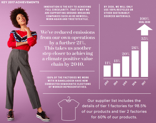 Esto es lo que destaca en el reporte de sustentabilidad de H&M.