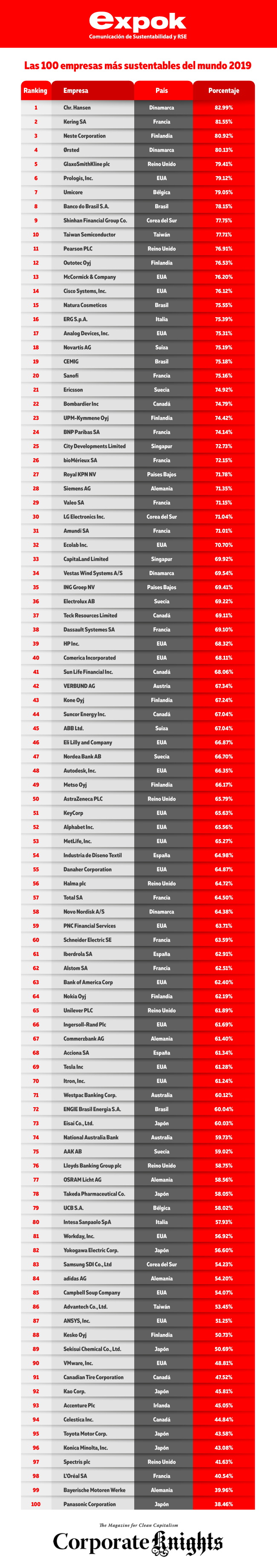 Estas son solo algunas de las empresas que pertenecen a las 100 compañías más sustentables del mundo. ¡A continuación te dejamos el listado completo!