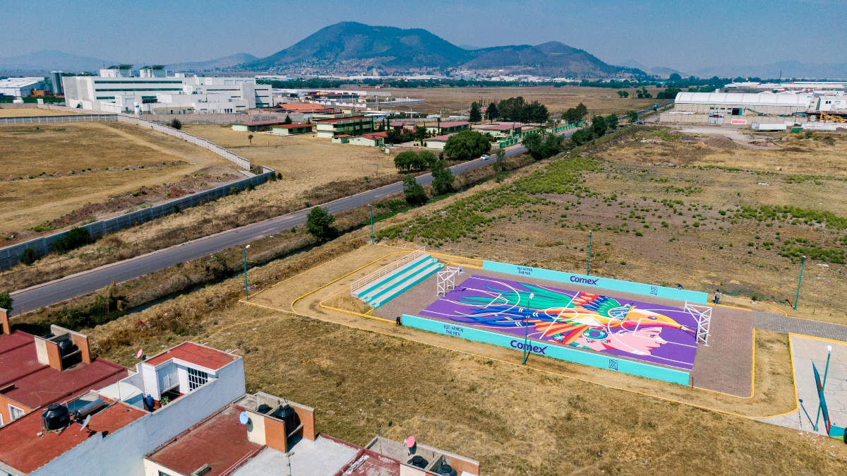 El trabajo en conjunto hizo posible que con 746 litros de pintura se lograra reacondicionar la cancha y se crearán seis murales en la zona, beneficiando a las familias y a la comunidad que utiliza estos lugares para fomentar la interacción e integración social.