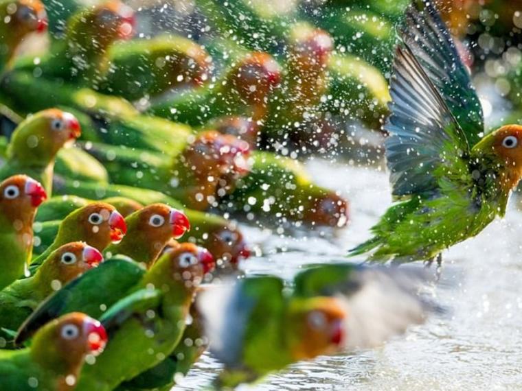 Los tortolitos de Lilian se reunieron y cuando la costa estaba despejada descendieron al estanque y ahí fue donde Luke Massey, autor de la foto tomó la imagen en el parque nacional del sur de Luangwa en Zambia.