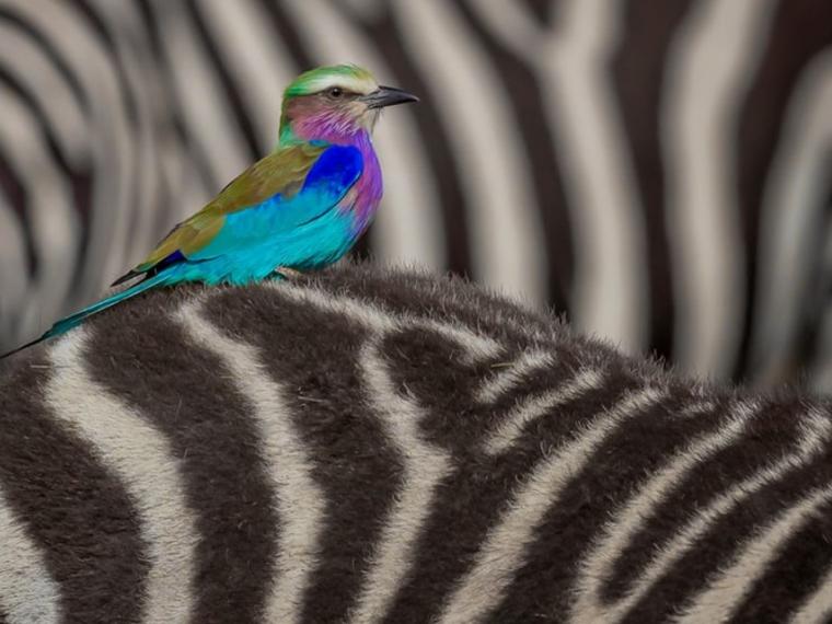 Un colorido pájaro africano montó una cebra y este hecho fue capturado durante un safari en la Reserva Nacional Massa Mara en Kenia. La fotografía fue realizada por Lakshitha Karunarathna de Sri Lanka.