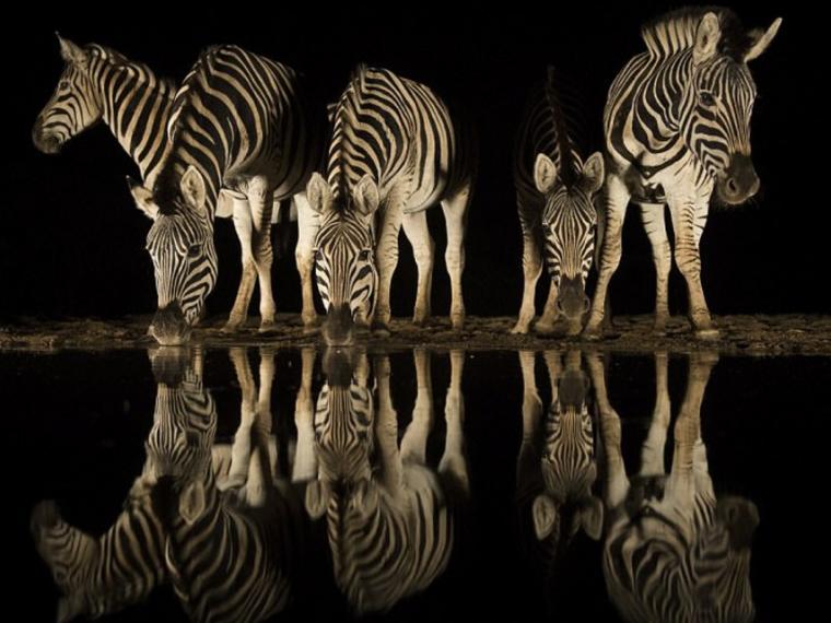 Cinco cebras salieron a un abrevadero en Zimanga, Sudáfrica y fue ahí donde Charl Senekal tomó este plano.