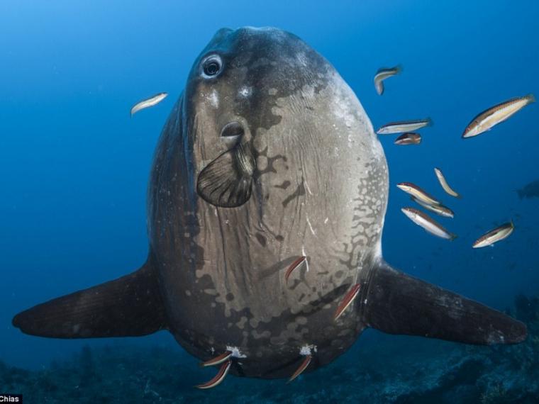 Jordi Chías Pujol, tomó esta fotografía bajo las aguas protegidas de Carall Bernat, en España. Se trata de un pez luna que tiene lábridos que le quitan los parásitos de la piel