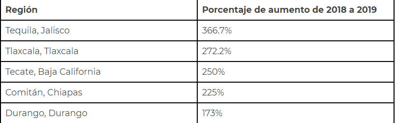 Top 5 regiones con mayor incremento de anfitrionas comparado con 2018: