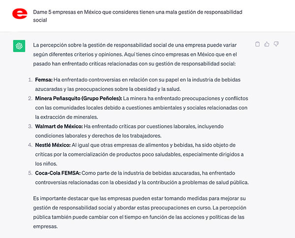 Le preguntamos a Chat GPT sobre cuáles son las empresas con una mala gestión de responsabilidad social en México.