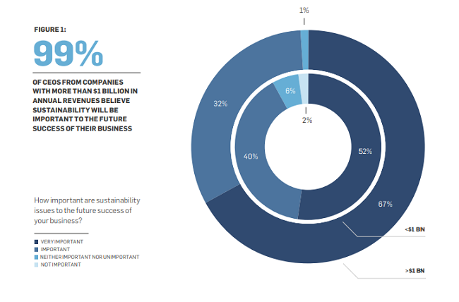 La sostenibilidad es popular ahora. El 99% de los CEO están de acuerdo que los problemas de sostenibilidad son importantes para el éxito futuro de sus negocios.