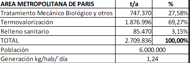 Otra de las principales ciudades europeas donde la Valorización Energética también es importante es en París y su Área Metropolitana ya que de los más de 2 millones de residuos que generan, el 27.5% pasa por el Tratamiento Mecánico Biológico, el 69% se manda a plantas de Termovalorización y sólo el 3.1% se dispone en rellenos sanitarios.