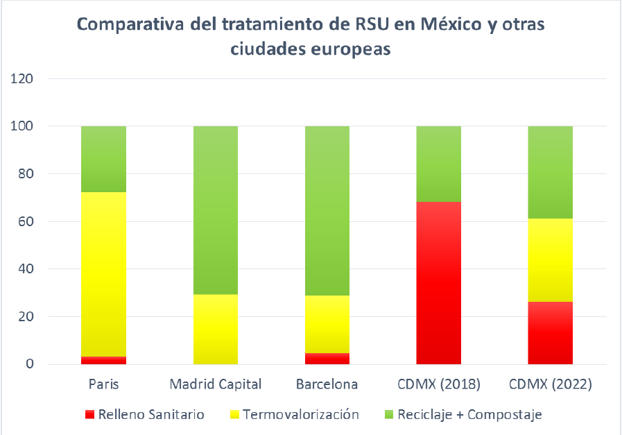 El proyecto de Termovalorización de la Ciudad de México contempla el tratamiento de la fracción inorgánica procedente de los Residuos Sólidos Urbanos, por lo que aplica el mismo principio de jerarquía en el tratamiento de residuos que usa la Unión Europea, solo valorizar aquella fracción sobre la que no es susceptible realizar reciclaje.
