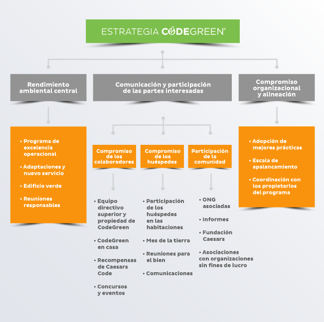 La administración ambiental es una parte integral de People Planet Play, la estrategia de Caesars. También es uno de los cuatro pilares del Código de Compromiso Corporativo de la marca y representa su promesa de preservar el planeta para las generaciones actuales y futuras. Para cumplir esto, Caesars implementó el programa CodeGreen en 2008.