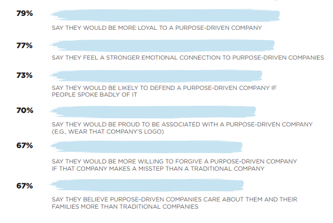 Las empresas con propósito pueden crear conexiones emocionales más fuertes con los consumidores que van mucho más allá de una relación casual, de acuerdo con el estudio de propósito Cone/Porter Novelli 2018.