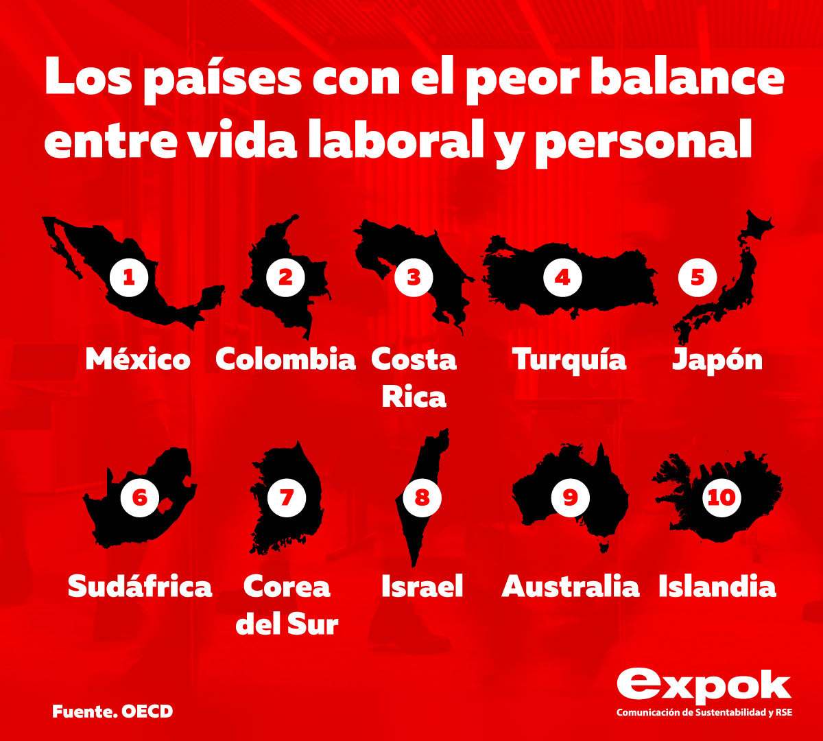 De acuerdo con la Organización para la Cooperación y el Desarrollo Económicos (OCDE), México tiene el primer puesto dentro del ranking de los países con el peor balance entre el trabajo y la vida personal. No es un secreto que en nuestro país, las y los empleados están sometidos a extensas jornadas y a condiciones laborales deplorables.