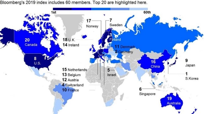 Los países más innovadores del mundo 2019 – Índice de innovación de Bloomberg