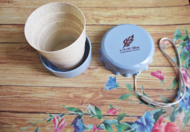 O como este vaso plegable para llevar y hecho a base de trigo que también se puede colgar en la mochila y puede ser utilizado para el café, el té o el agua. También cuentan con una cápsula reutilizable de café.