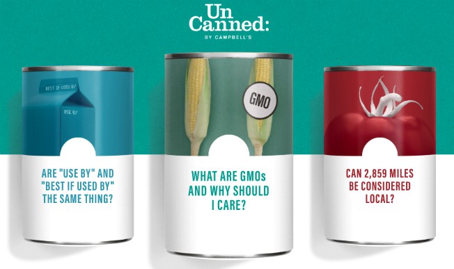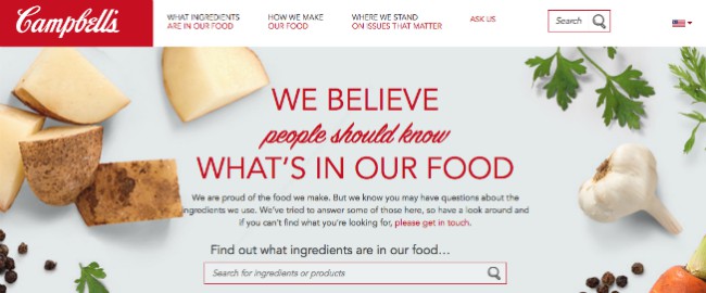 La marca tiene dos sitios web orientados al consumidor: www.whatsinmyfood.com y www.uncannedbycampbells.com, los cuales comunican sus programas de responsabilidad social y abordan preguntas específicas planteadas por los consumidores.