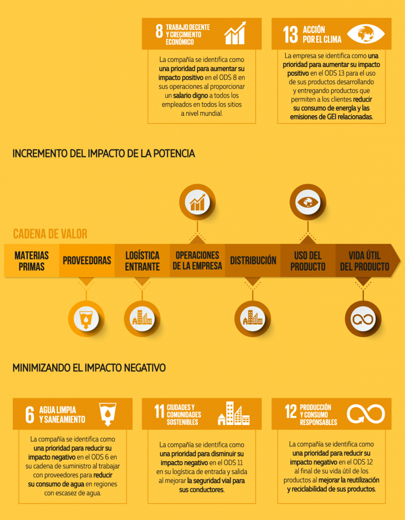 Por lo tanto, se recomienda que las empresas consideren toda la cadena de valor, desde la base de suministro y la logística de entrada, a través de la producción y las operaciones, la distribución, el uso y el final de la vida útil de los productos como el punto de partida para evaluar el impacto y definir prioridades.