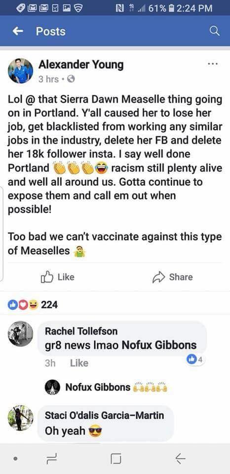 Los comentarios racistas de una mujer en Oregon se vuelven virales en Facebook.