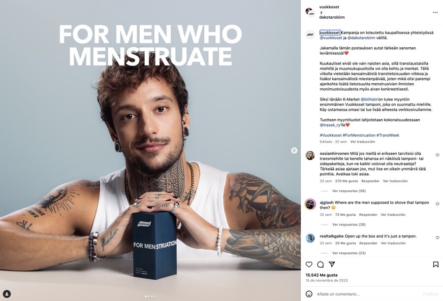 Muchas veces hemos visto que estos temas suelen ser algo álgidos cuando se publican en redes sociales, pero Vuokkoset publicó el lanzamiento en Instagram cosechando buen engagement con más de 15 mil reacciones y decenas de comentarios.